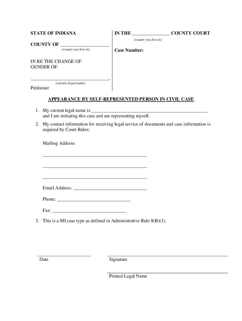 Get the free Name and Gender Marker Forms - Indiana Legal Services, Inc