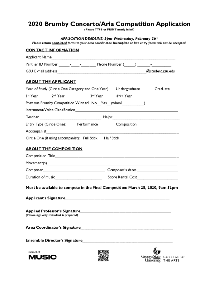 2020 Crumby Concerto/Aria Competition Application (Please TYPE or PRINT neatly in ink)APPLICATION DEADLINE: 5pmWednesday, February 26thPlease return completed forms to your area coordinator. Incomplete