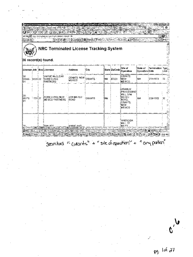 Get the free NRC Terminated License Tracking System Results for Grants.