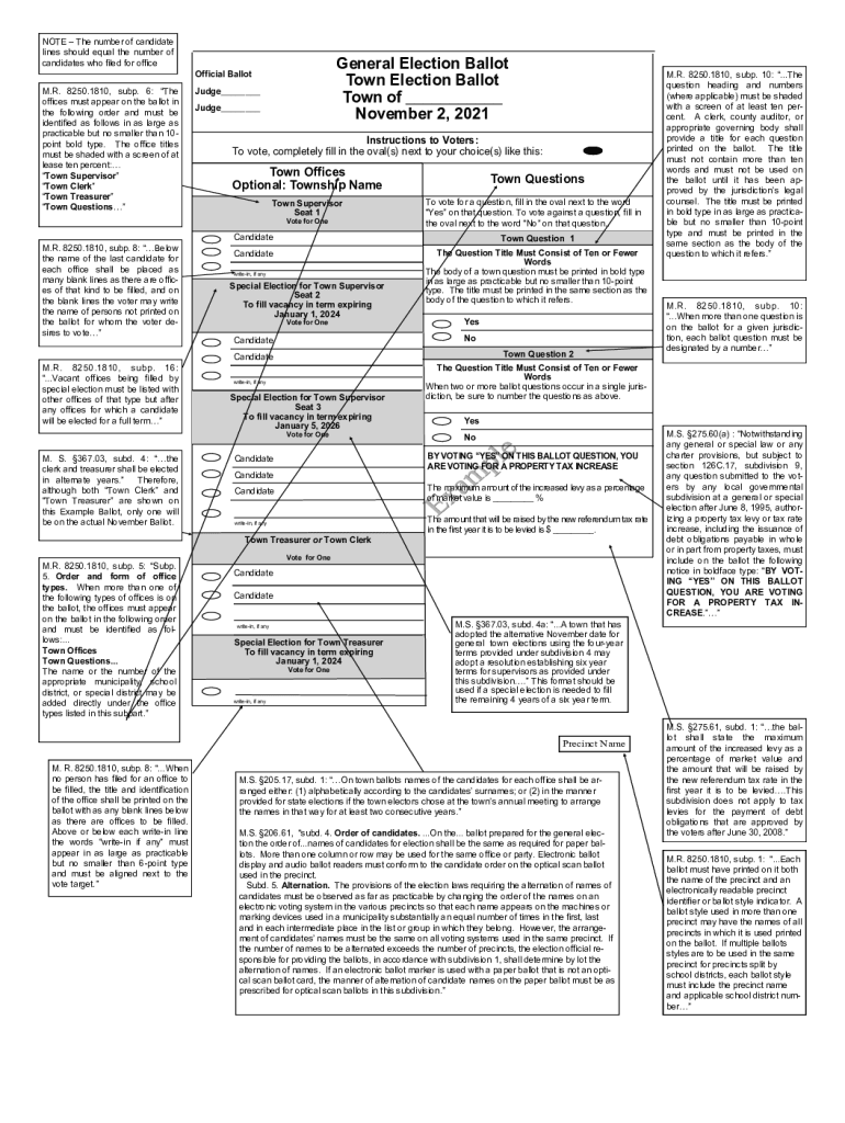 NOTE The number of candidate lines should equal the number of candidates who filed for officeGeneral Election Ballot Town Election Ballot Town of ___ November 2, 2021Official Ballot M.R. 8250.1810,