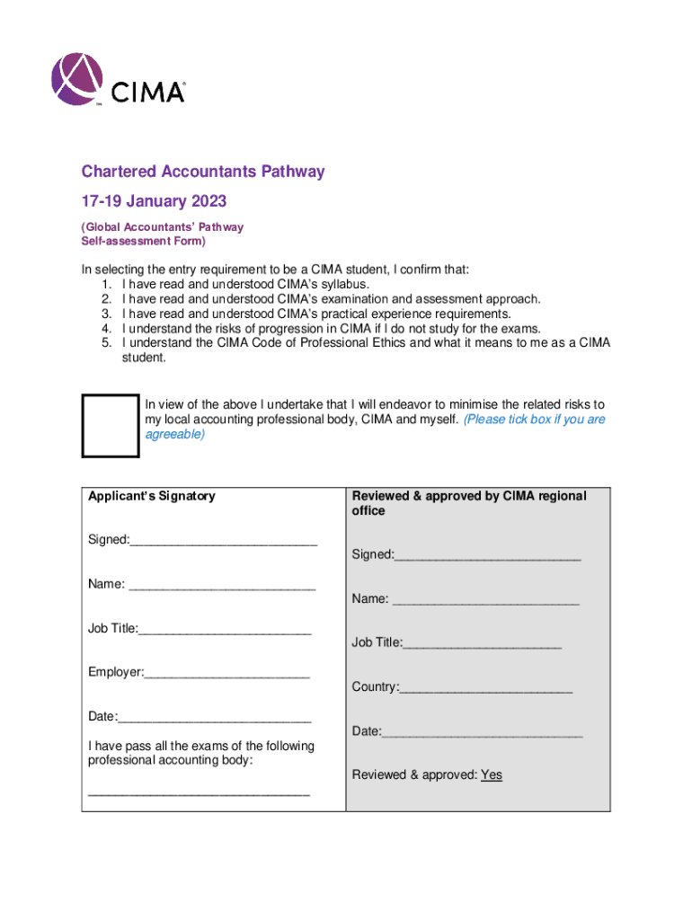 Get the free CIMA Corporate Professional Pathway Self-assessment Form