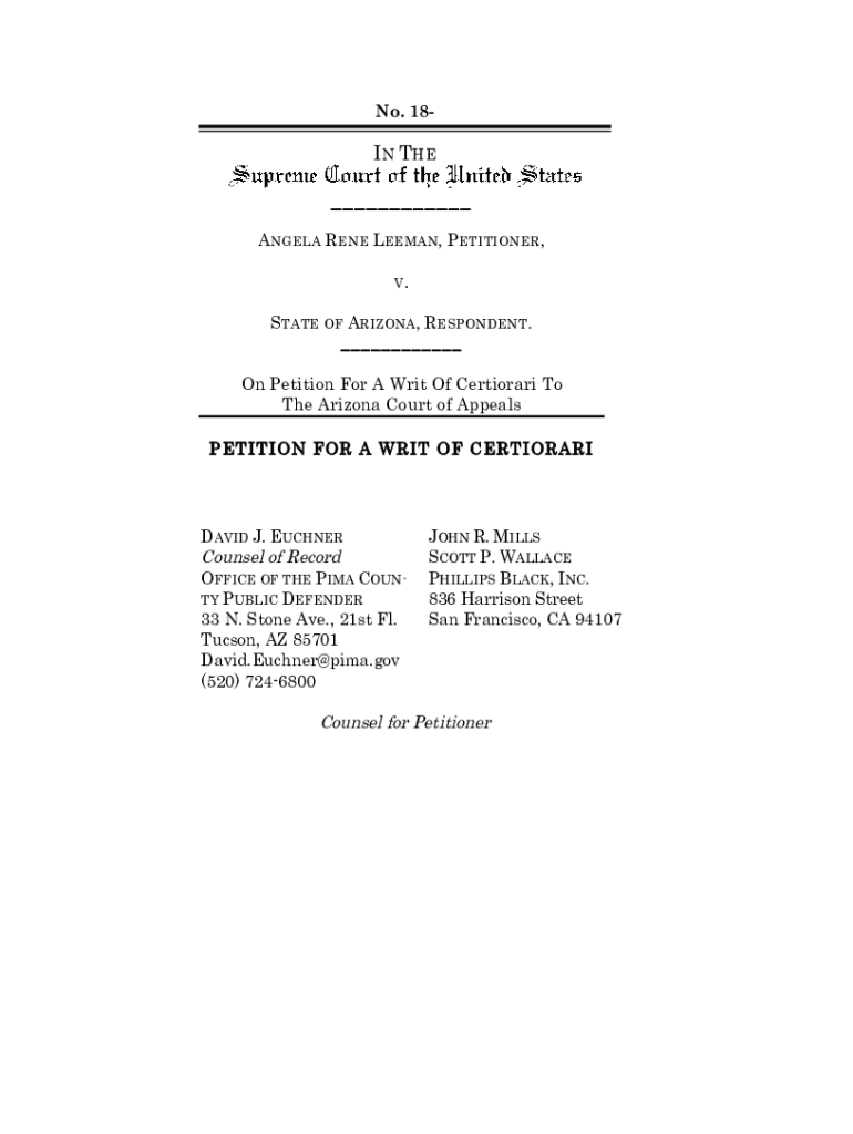 No. 18IN THE___ANGELA RENE LEHMAN, PETITIONER, V.STATE OF ARIZONA, RESPONDENT.___On Petition For A Writ Of Certiorari To The Arizona Court of AppealsPETITION FOR A WRIT OF CERTIORARIDAVID J. BÜCHNER