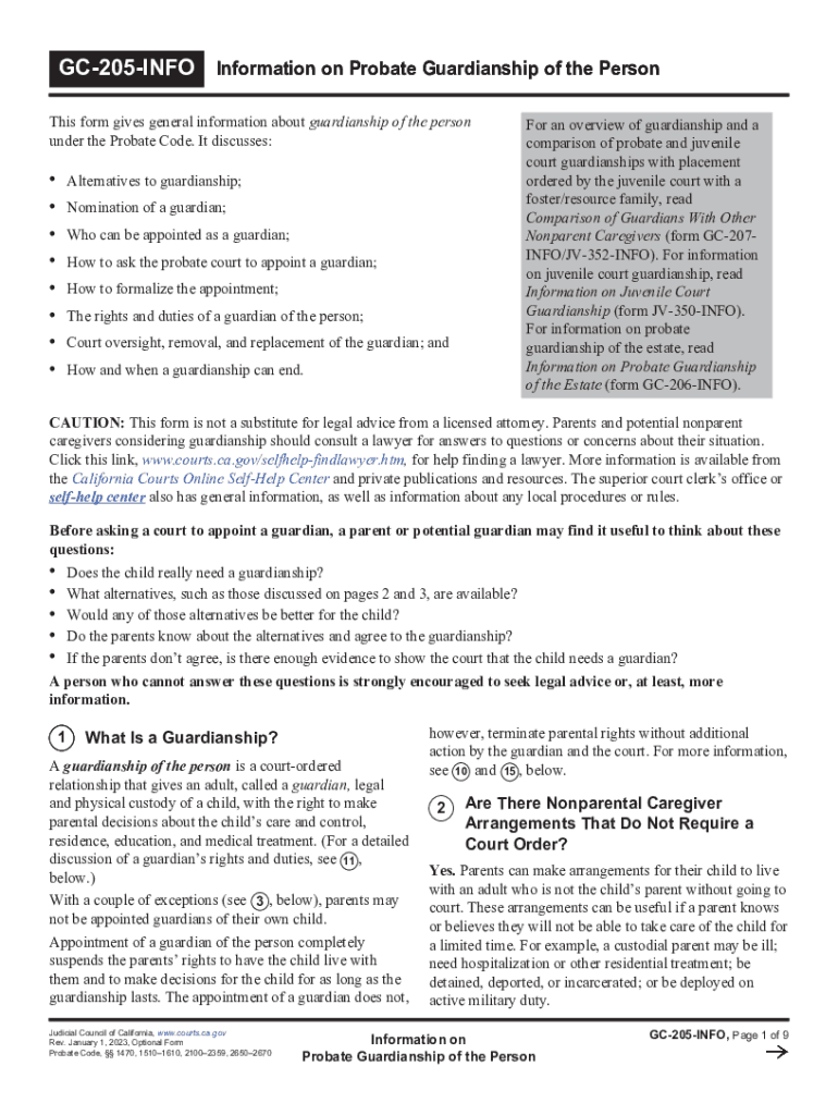 Get the free GC-205-INFO Information on Probate Guardianship of the Person. Judicial Council forms