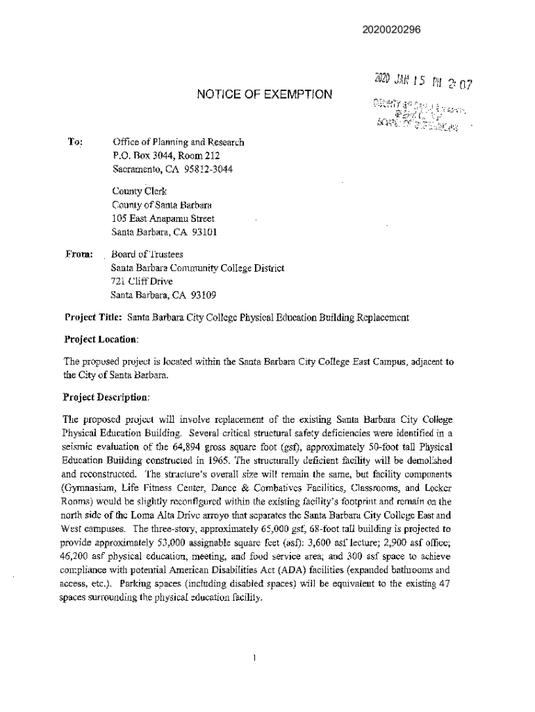20200202962020 Jet 15 m1 11NOTICE OF EXEMPTION\'), t:_, f:, ;:;J!\'Fly ;.;\” EI?FTG\'Cf To:Office of Planning and Research P.O. Box 3044, Room 212 Sacramento, CA 958123044 County Clerk County of