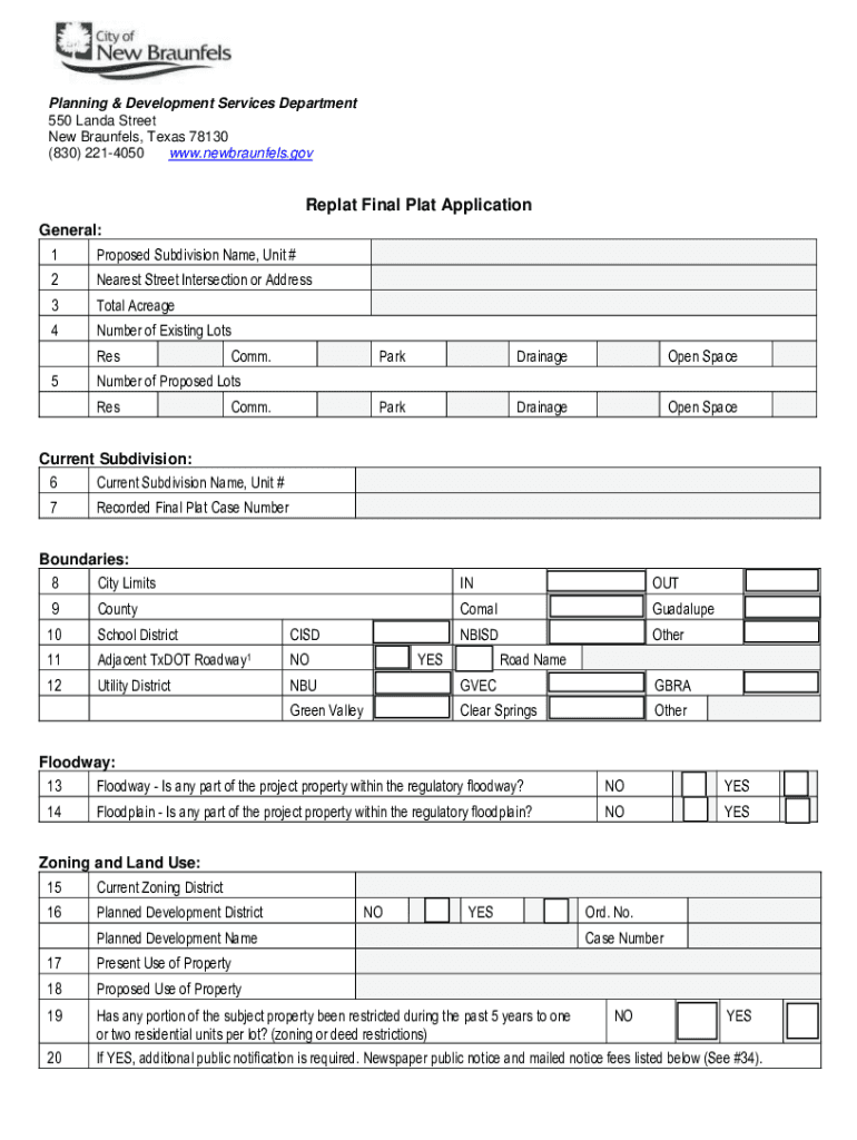 Get the free Replat Final Plat Application