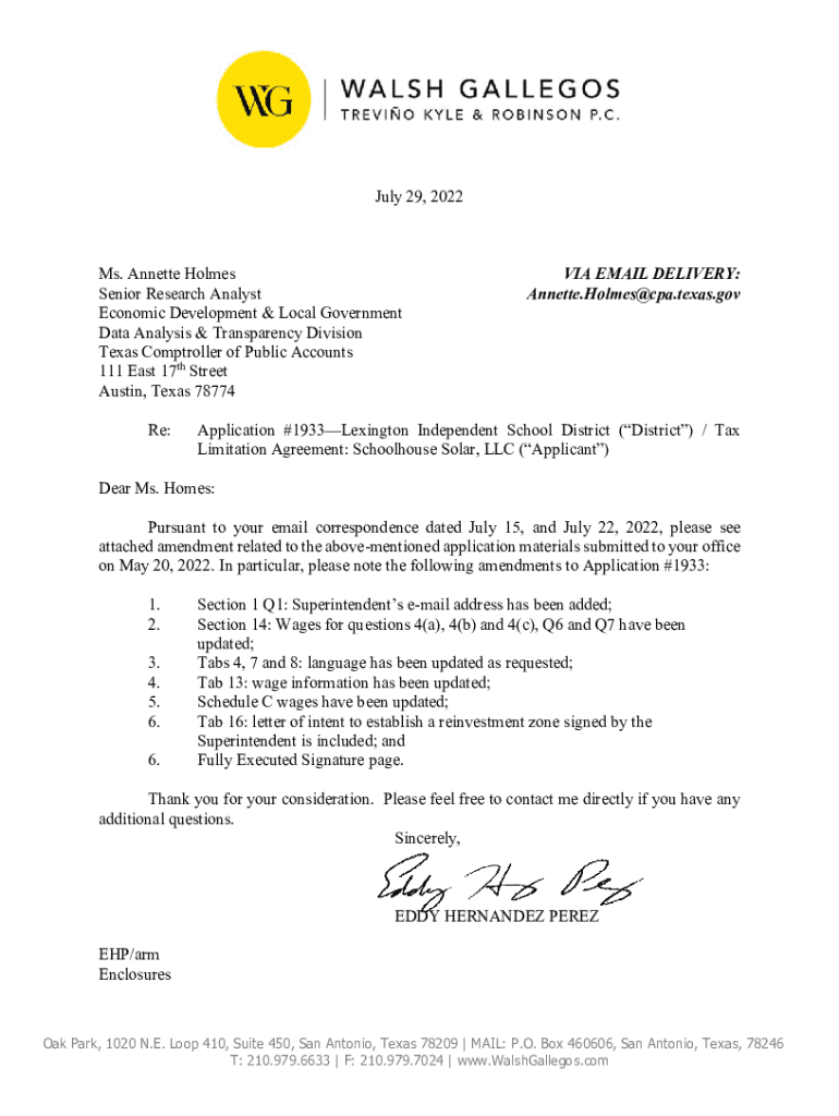 July 29, 2022Ms. Annette Holmes Senior Research Analyst Economic Development & Local Government Data Analysis & Transparency Division Texas Comptroller of Public Accounts 111 East 17th Street Austin,