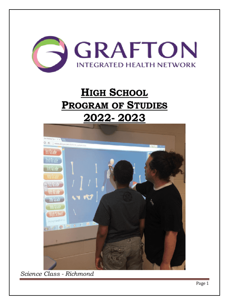 HIGH SCHOOL PROGRAM OF STUDIES 2022 2023Science Class Richmond Page 1Dear Students and Parents: This handbook has been prepared to help Grafton high school students and their parents explore the course