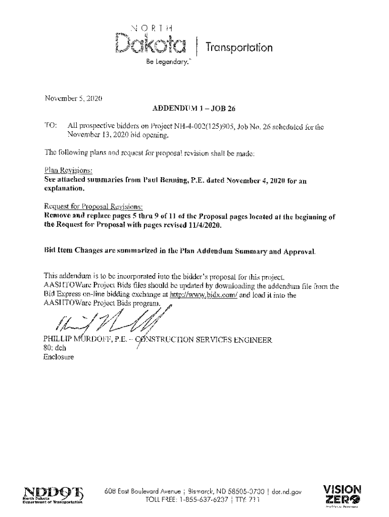 PLANADDENDUMSUMMARYANDAPPROVAL PROJECTINFORMATION Project:NHU4002(131)906PCN:Location:US2B(BurdickExpy)1stStSWtoValleyStreetDate:11/03/2020LeadDesigner:BidOpeningDate: 11/13/2020JOB#:22446ApexEngineeringGroup26Addendum#:1