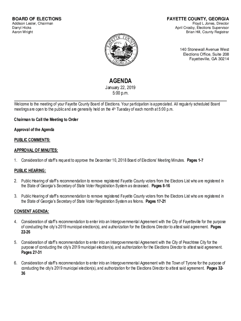 BOARD OF ELECTIONSFAYETTE COUNTY, GEORGIAAddison Lester, Chairman Darryl Hicks Aaron Wright Floyd L Jones, Director April Crosby, Elections Supervisor Brian Hill, County Registrar140 Stonewall Avenue