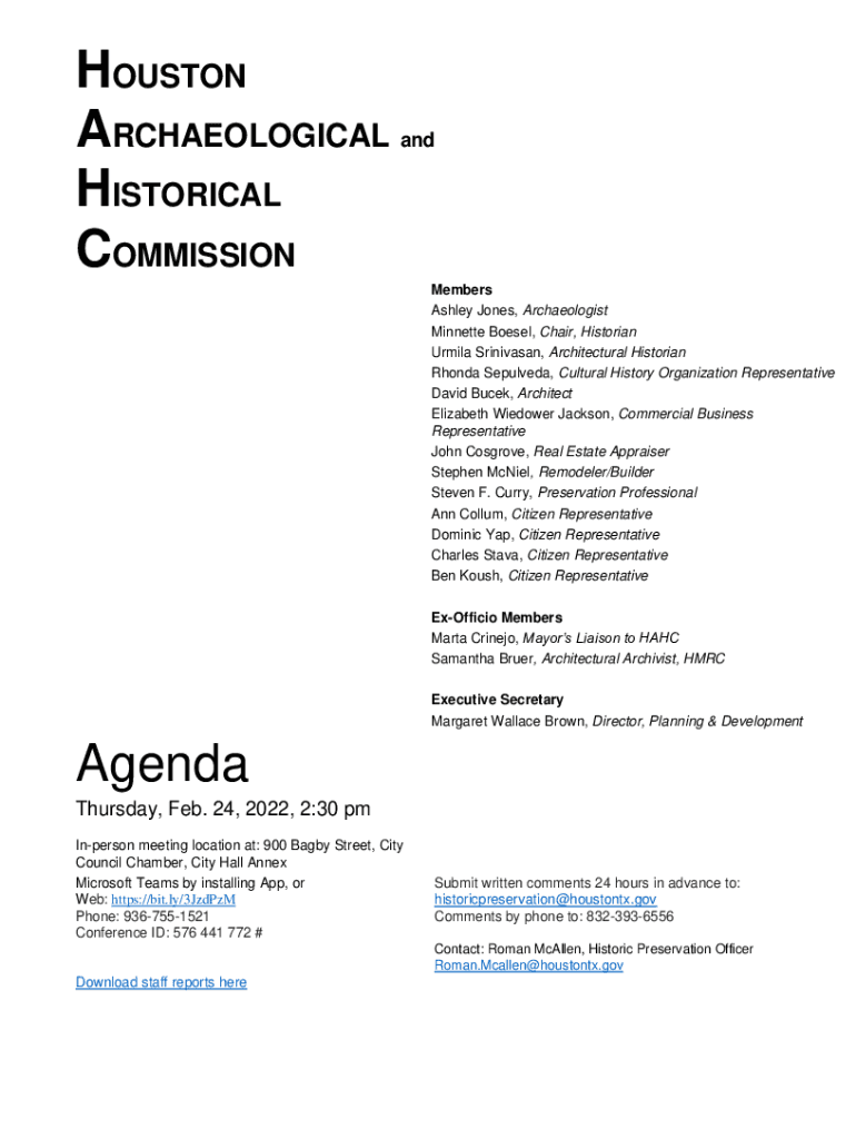 Get the free City of Houston Archaeological and Historical Commission met Feb ...