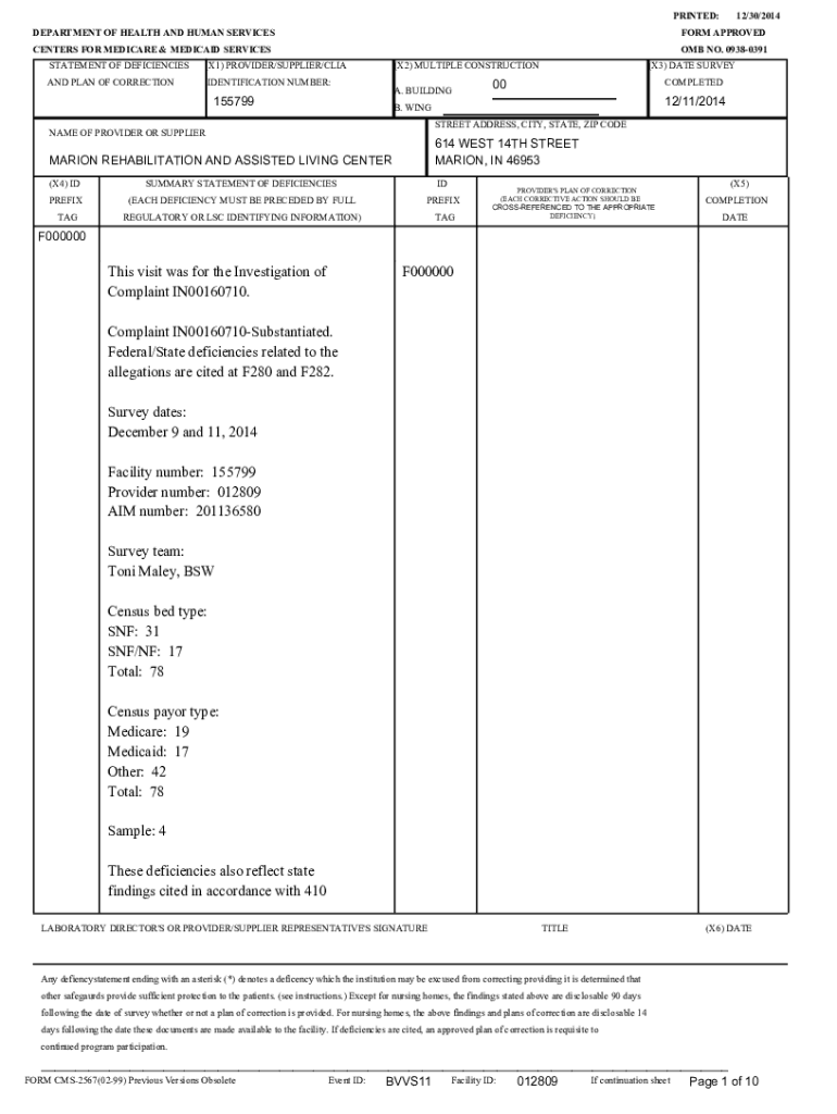 Get the free This visit was for the Investigation of Complaint IN00160710 ...