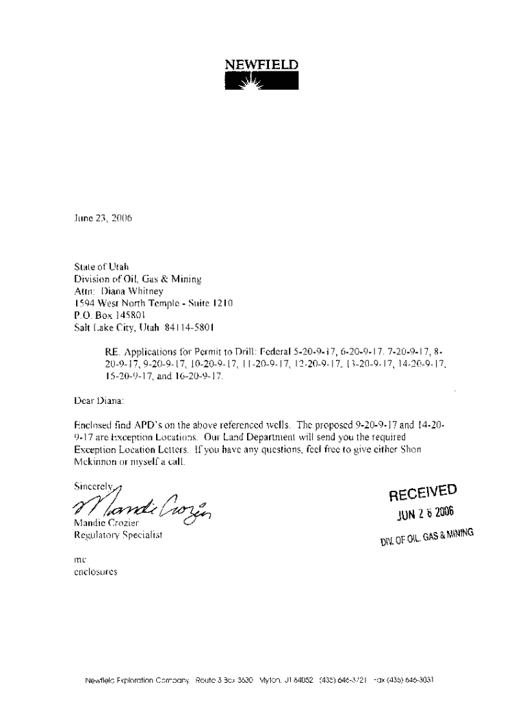 NEWFIELDJune 23, 2006State of Utah Division of Oil, Gas & Mining Attn: Diana Whitney 1594 West North Temple Suite 1210 P.O. Box 145801 Salt Lake City, Utah 841145801 RE: Applications for Permit to