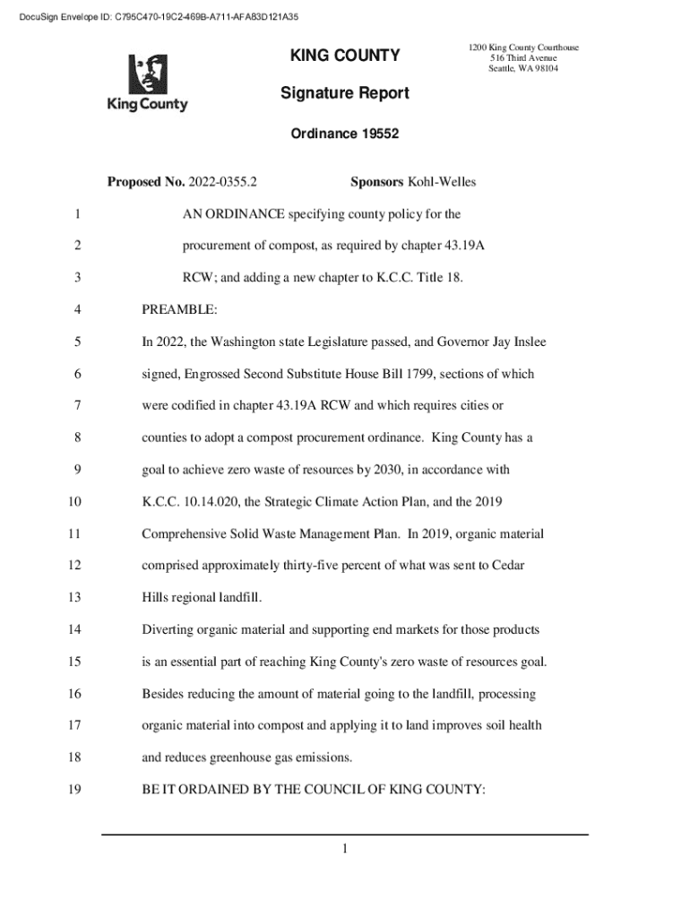 DocuSign Envelope ID: C795C47019C2469BA711AFA83D121A35KING COUNTY1200 King County Courthouse 516 Third Avenue Seattle, WA 98104Signature Report Ordinance 19552Proposed No. 20220355.2Sponsors KohlWelles1AN