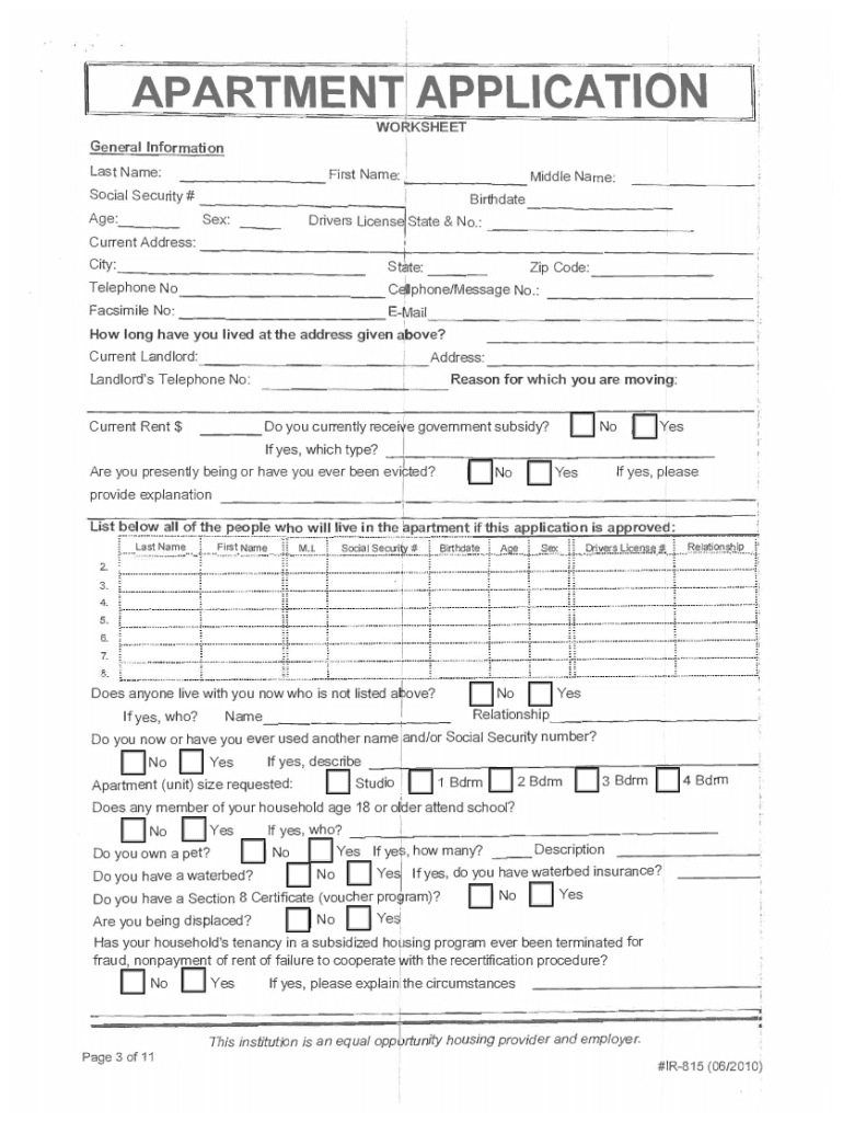 III.APARTMENT/ APPLICATION TO×KSHEETGeneral Informational Name:___ First Name: t___ Middle Name: Social Security# Birthdate ___, I Age:___ Sex: ___ Driver's License State & No.: ! Current Address:+c