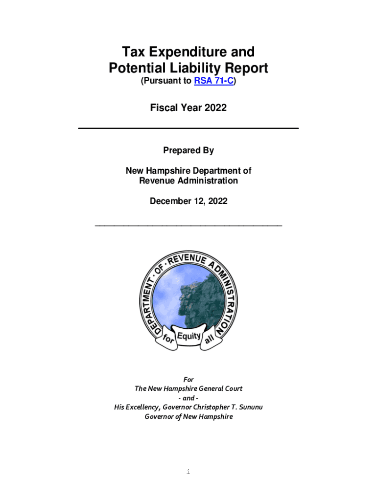 Tax Expenditure and Potential Liability Report (Pursuant to RSA 71C)Fiscal Year 2022___ Prepared By New Hampshire Department of Revenue Administration December 12, 2022 ___For The New Hampshire General
