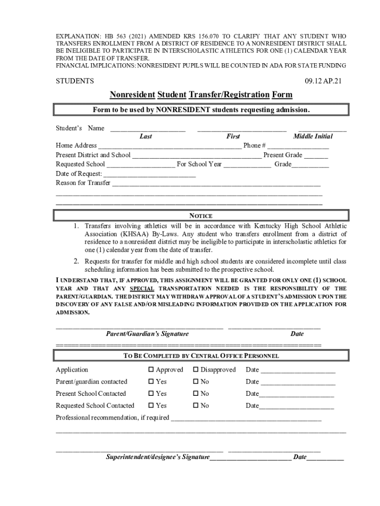 Get the free Nonresident students - Kentucky Department of Education - education ky