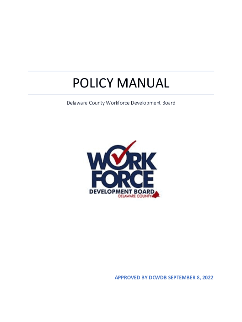 Get the free Policy Manual. Delaware County Workforce Development Board