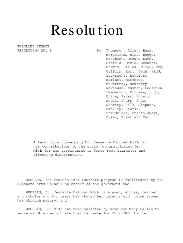 Res old ton ENROLLED SENATE RESOLUTION NO. 9By: Thompson, Allen, Bass, Bergstrom, Nice, Boggs, Brethren, Brown, Dam, Daniels, David, Dos sett, Dagger, Fields, Floyd, Fry, Griffin, Holt, Tech, Kidd,