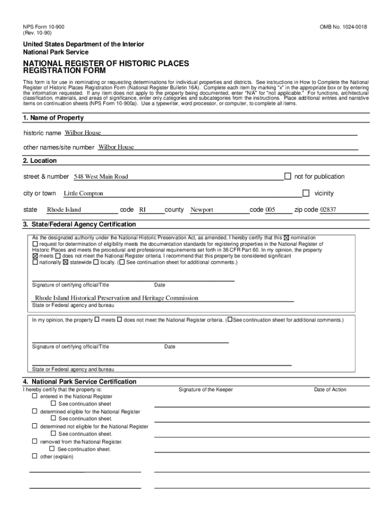 Get the free NR Form - Wilbor HouseFinal.doc - preservation ri