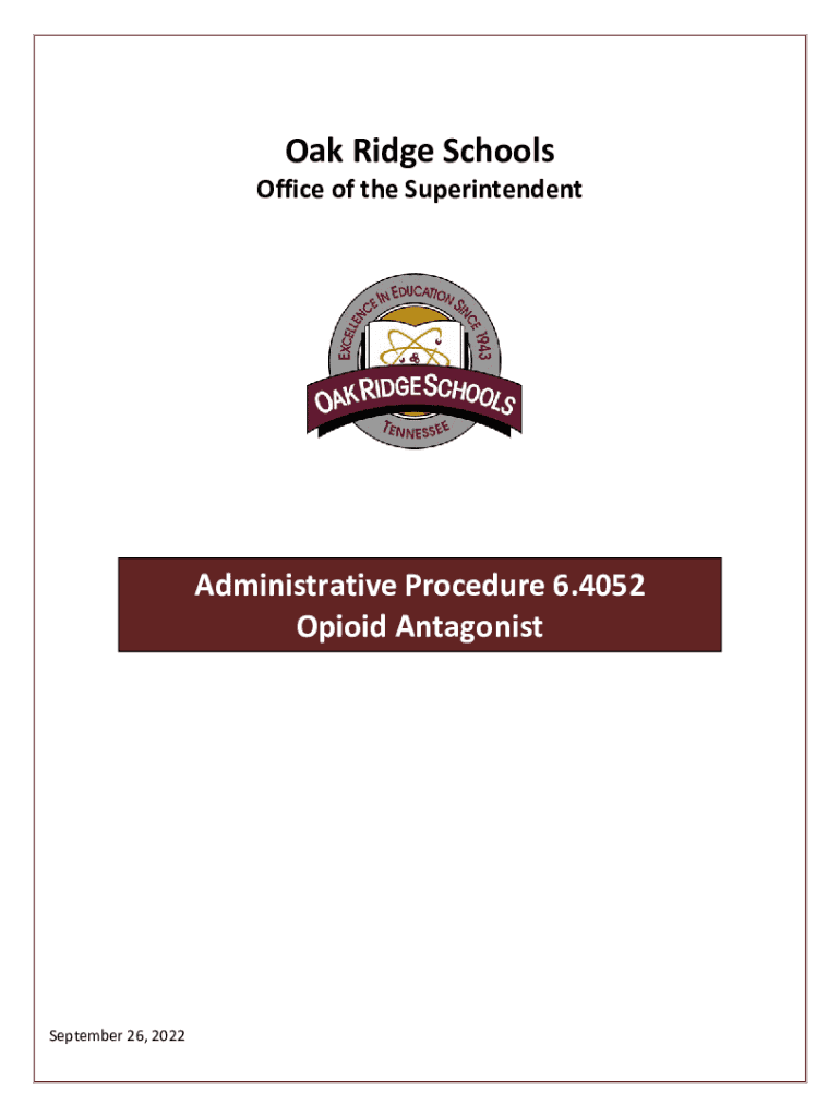 Oak Ridge Schools Office of the SuperintendentAdministrative Procedure 6.4052 Opioid Antagonist September 26, 2022Purpose: To reduce morbidity and mortality related to opioid overdose. Under these