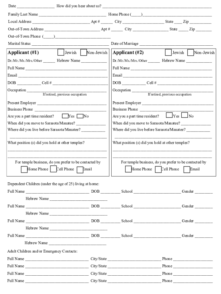 The information usually required on the Temple Emanu-El membership application includes personal details, contact information, and reasons for wanting to join the congregation.