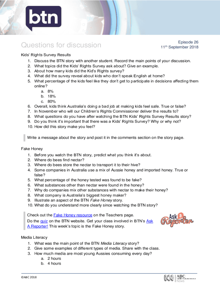 Get the free BTN - Questions for discussion - ABC