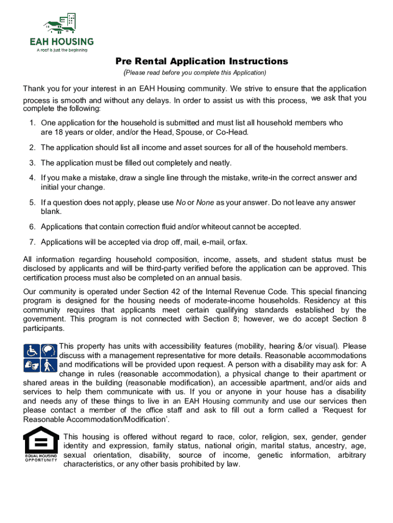 PRE Rental Application Instructions (Please read before you complete this Application)Thank you for your interest in an EAH Housing community. We strive to ensure that the application process is smooth