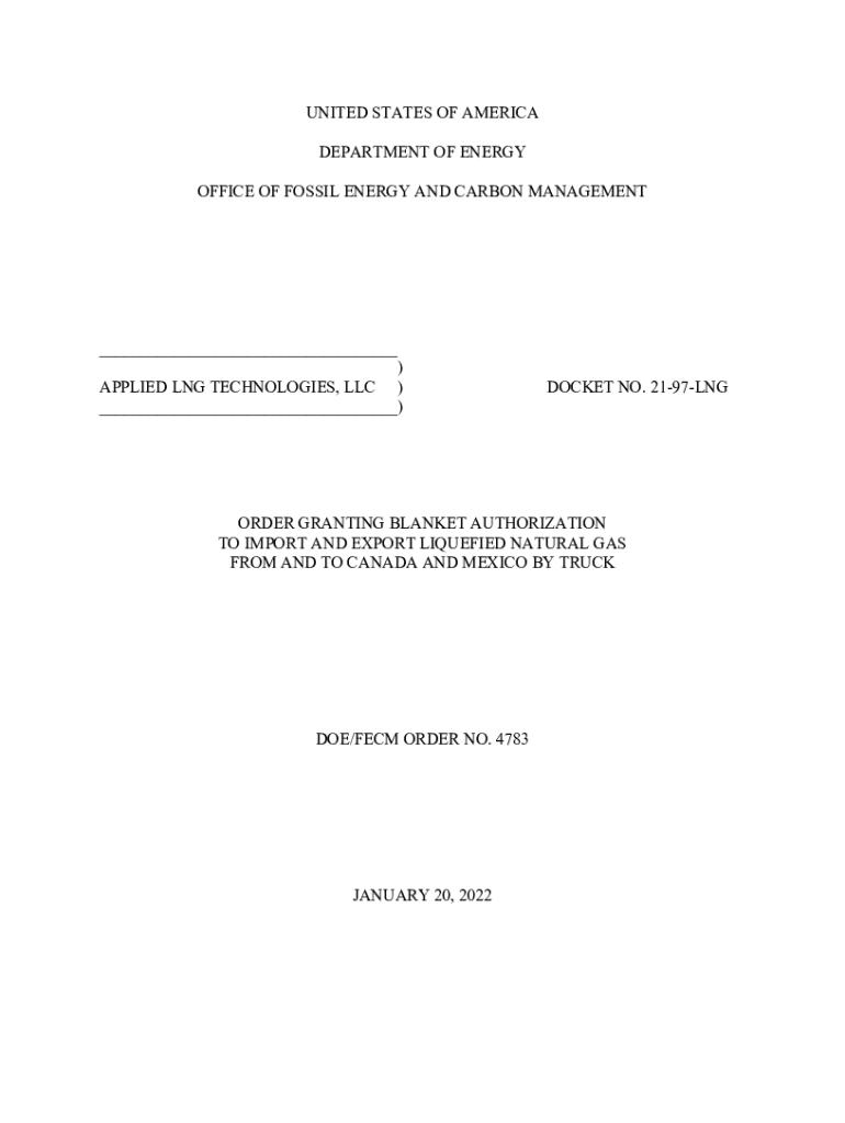 UNITED STATES OF AMERICA DEPARTMENT OF ENERGY OFFICE OF FOSSIL ENERGY AND CARBON MANAGEMENT___) APPLIED LNG TECHNOLOGIES, LLC) ___)DOCKET NO. 2197LNGORDER GRANTING BLANKET AUTHORIZATION TO IMPORT