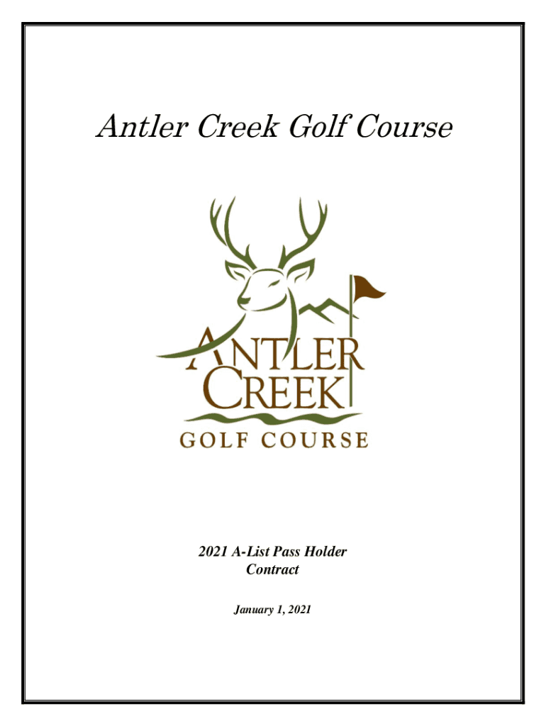 Antler Creek Golf Course2021 List Pass Holder Contract January 1, 20212021 Antler Creek List Pass Holder. Golf List pass holders will receive unlimited golf each day available per designation. Non-price