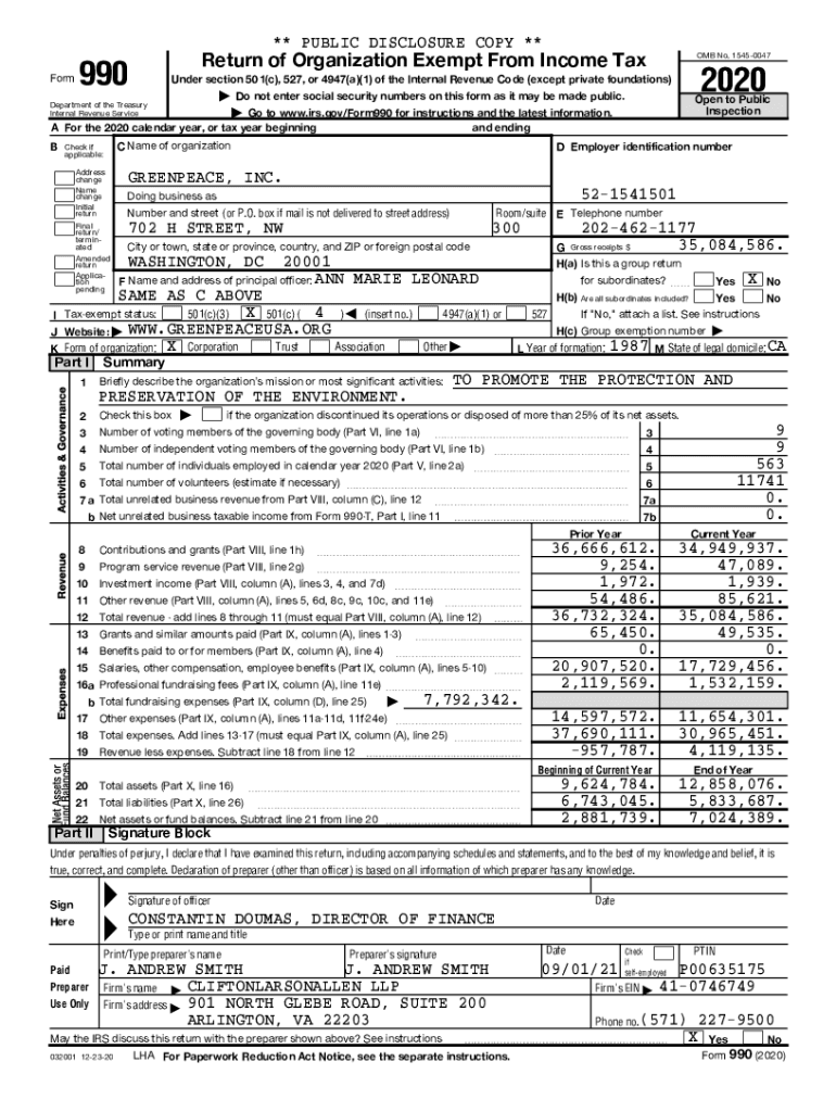 ** PUBLIC DISCLOSURE COPY ** Form990Return of Organization Exempt From Income Tax OMB No. 15450047| Do not enter social security numbers on this form as it may be made public. Open to Public Inspection2020Under
