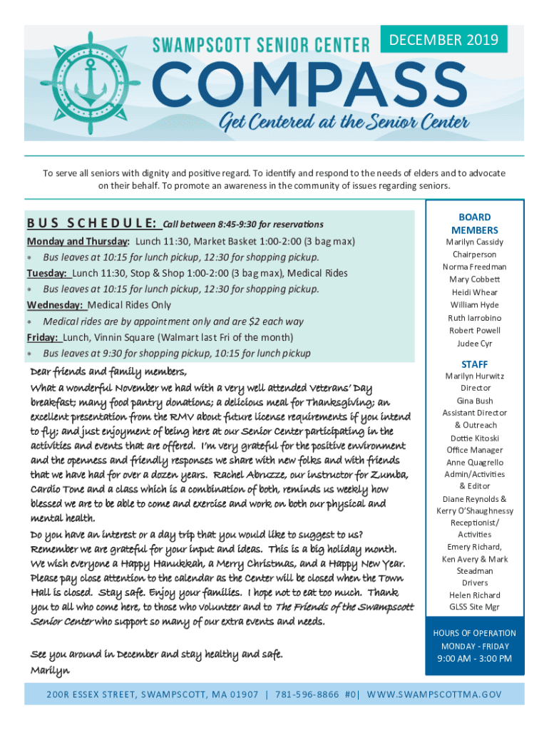 DECEMBER 2019MISSION Statement serve all seniors with dignity and positive regard. To identify and respond to the needs of elders and to advocate on their behalf. To promote an awareness in the community