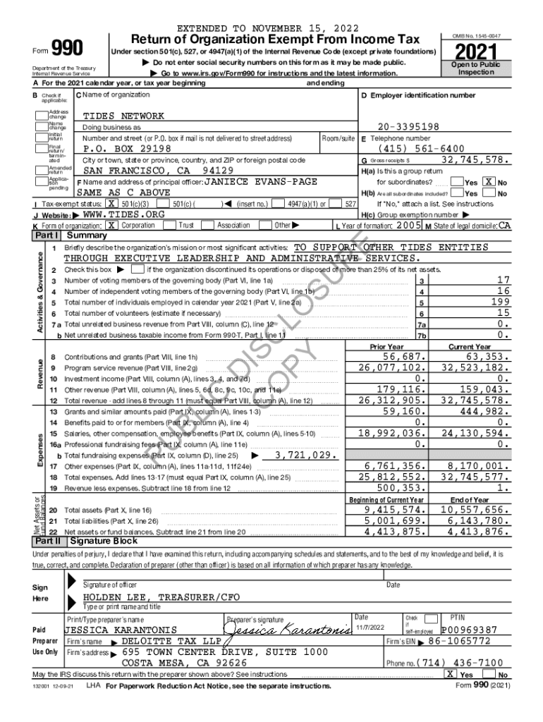 EXTENDED TO NOVEMBER 15, 2023 Form990Return of Organization Exempt From Income Tax OMB No. 15450047| Do not enter social security numbers on this form as it may be made public. Open to Public Inspection2021Under