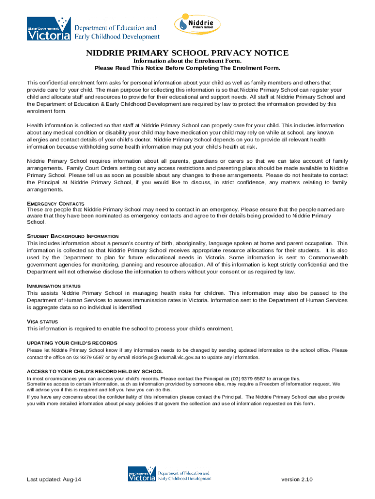 What is Enrolment Niddrie Primary School - niddrieps vic edu Form?