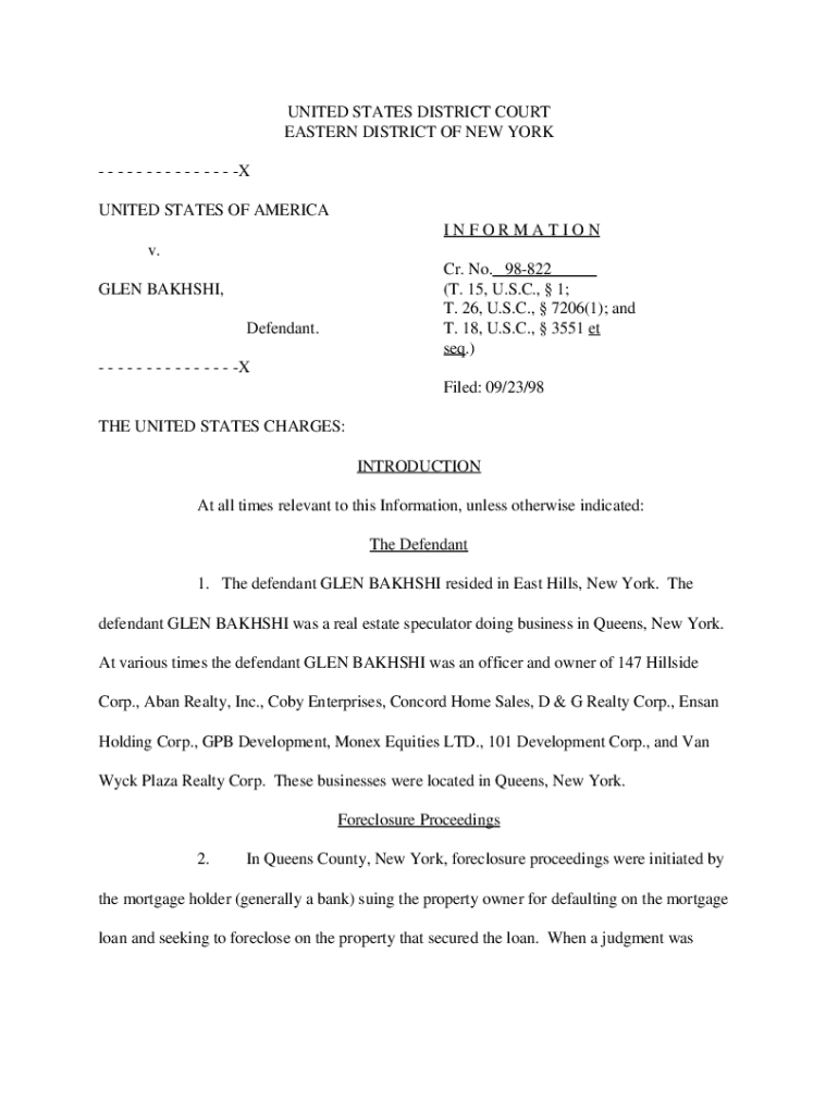 UNITED STATES DISTRICT COURT EASTERN DISTRICT OF NEW YORK X UNITED STATES OF AMERICA INFORMATION v. Cr. No. 98822 (T. 15, U.S.C., 1; T. 26, U.S.C., 7206(1); and T. 18, U.S.C., 3551 et seq.)GLEN TAKASHI,