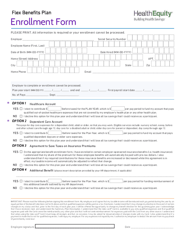 Enrollment Form PLEASE PRINT. All information is required or your enrollment cannot be processed. Employer___ Social Security Number Employee Name (First, Last)Date of Birth (MMDDYYYY)Date Hired (MMDDYYYY)Home