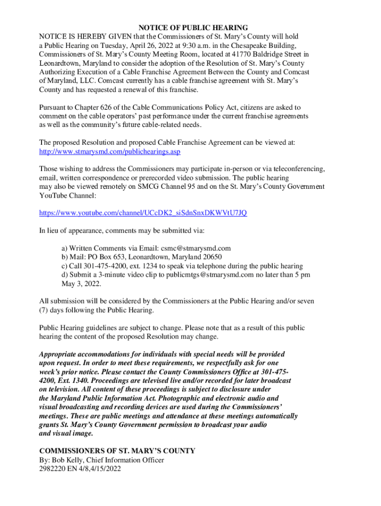 Get the free Notice of Public Hearings - St. Mary's County Government