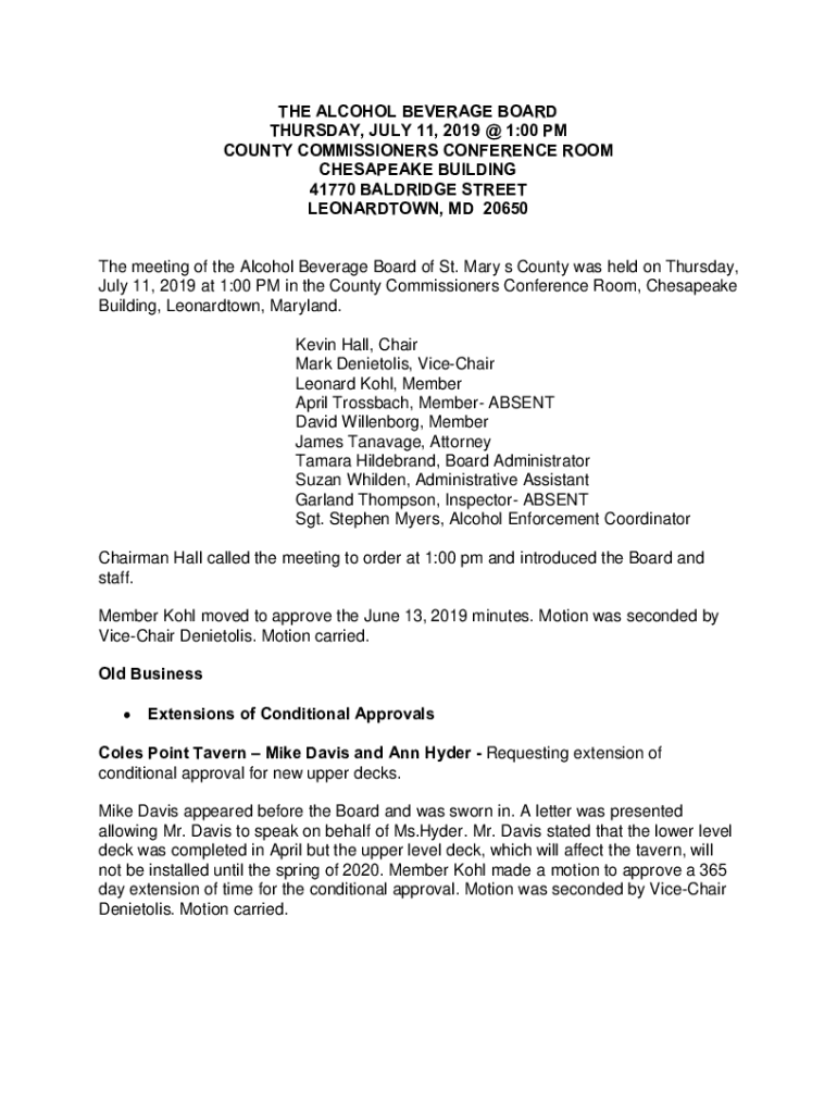 LEOPARDSTOWN, MD 20650The meeting of the Alcohol Beverage