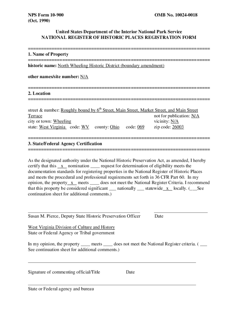 North Wheeling Historic District is not the form you're looking for?Search for another form here.