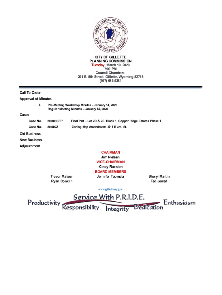Get the free CITY OF GILLETTE PLANNING COMMISSION Tuesday, March 10 ...