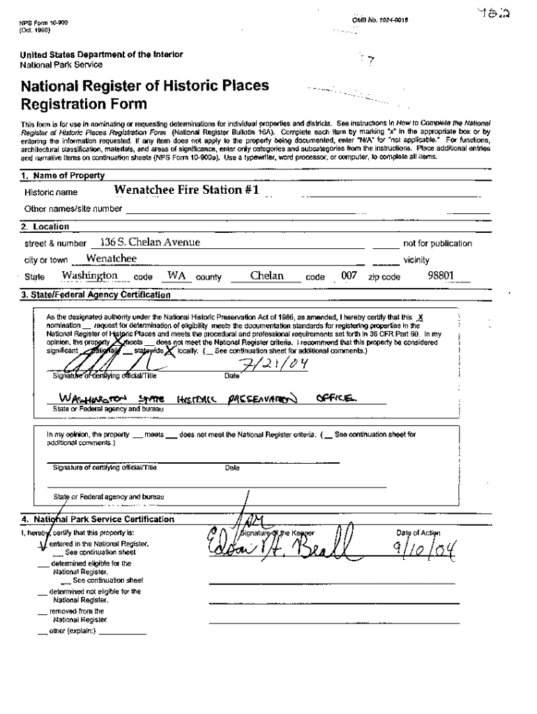 OMB No. 10240018NPS Form 10900 (Oct. 1990)United States Department of the Interior National Park ServiceNational Register of Historic Places Registration Form This form is for use in nominating or