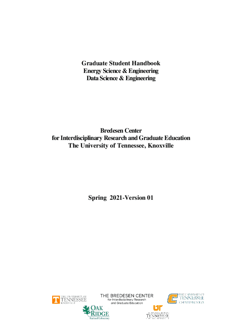 Graduate Student Handbook Energy Science & Engineering Data Science & EngineeringBredesen Center for Interdisciplinary Research and Graduate from Education The University of Tennessee, KnoxvilleSpring
