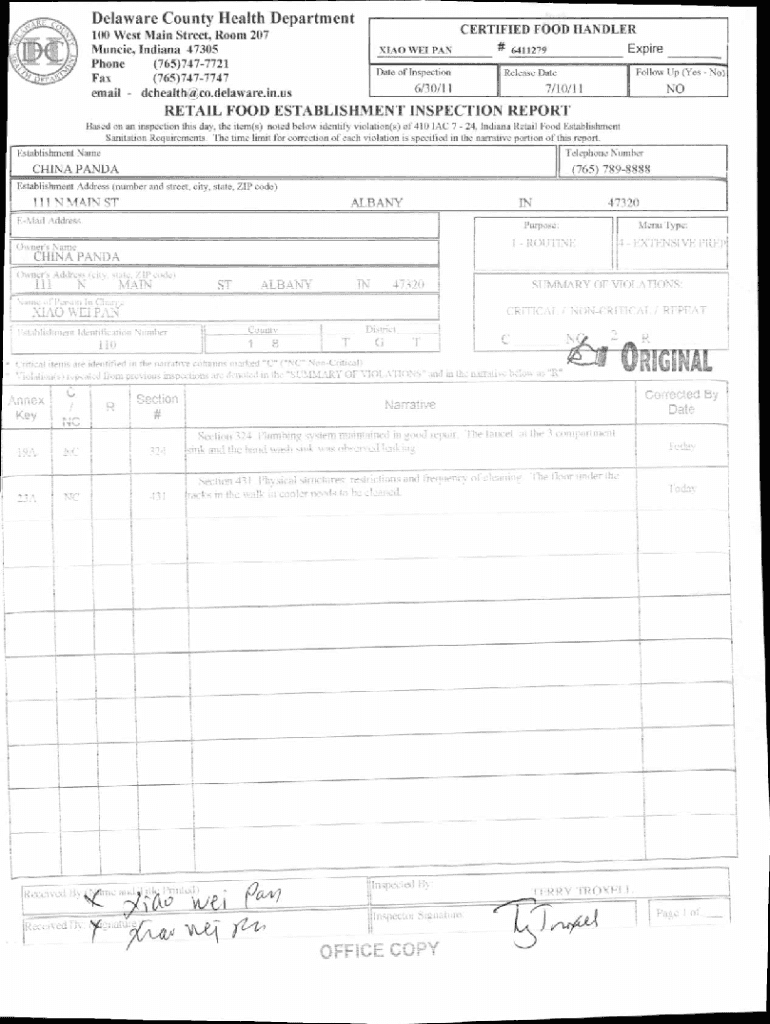 Get the free RETAIL FOOD ESTABLISHMENT INSPECTION REPORT ...