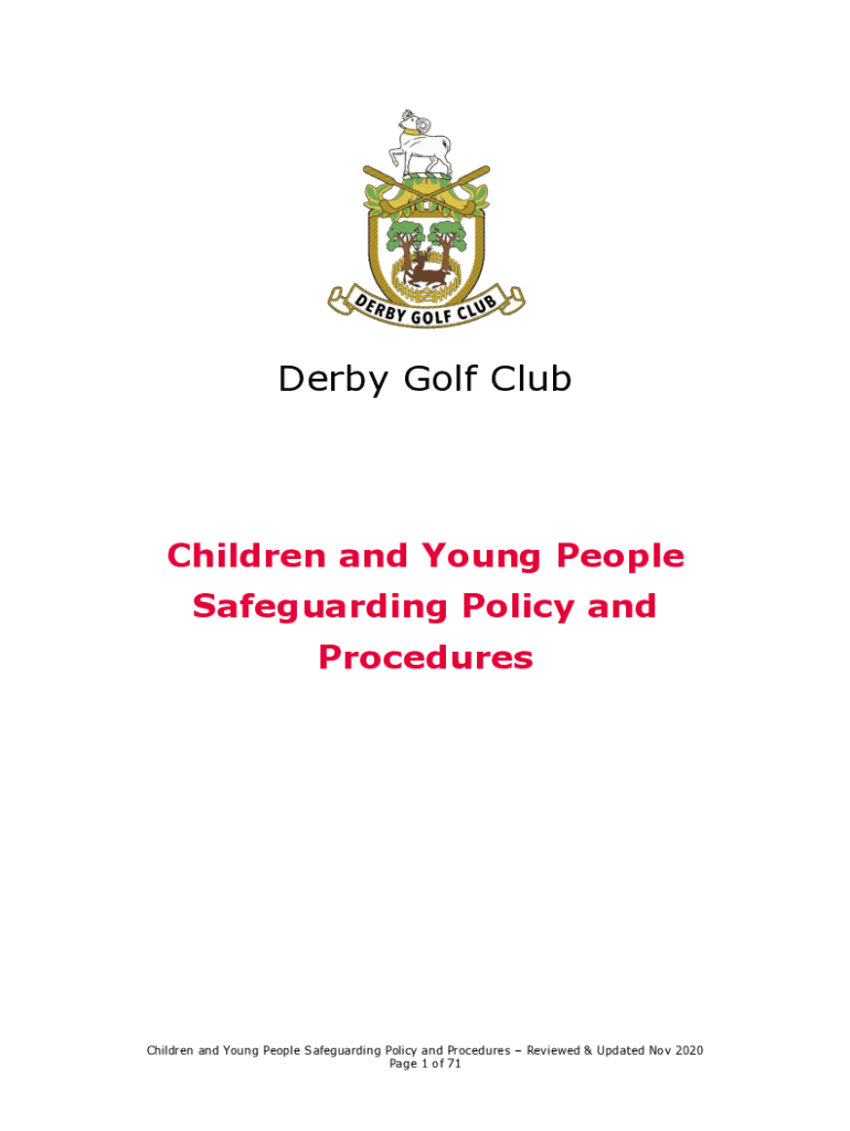 Derby Golf ClubChildren and Young People Safeguarding Policy and ProceduresChildren and Young People Safeguarding Policy and Procedures Reviewed & Updated Nov 2020-Page 1 of 71Safeguarding Policy