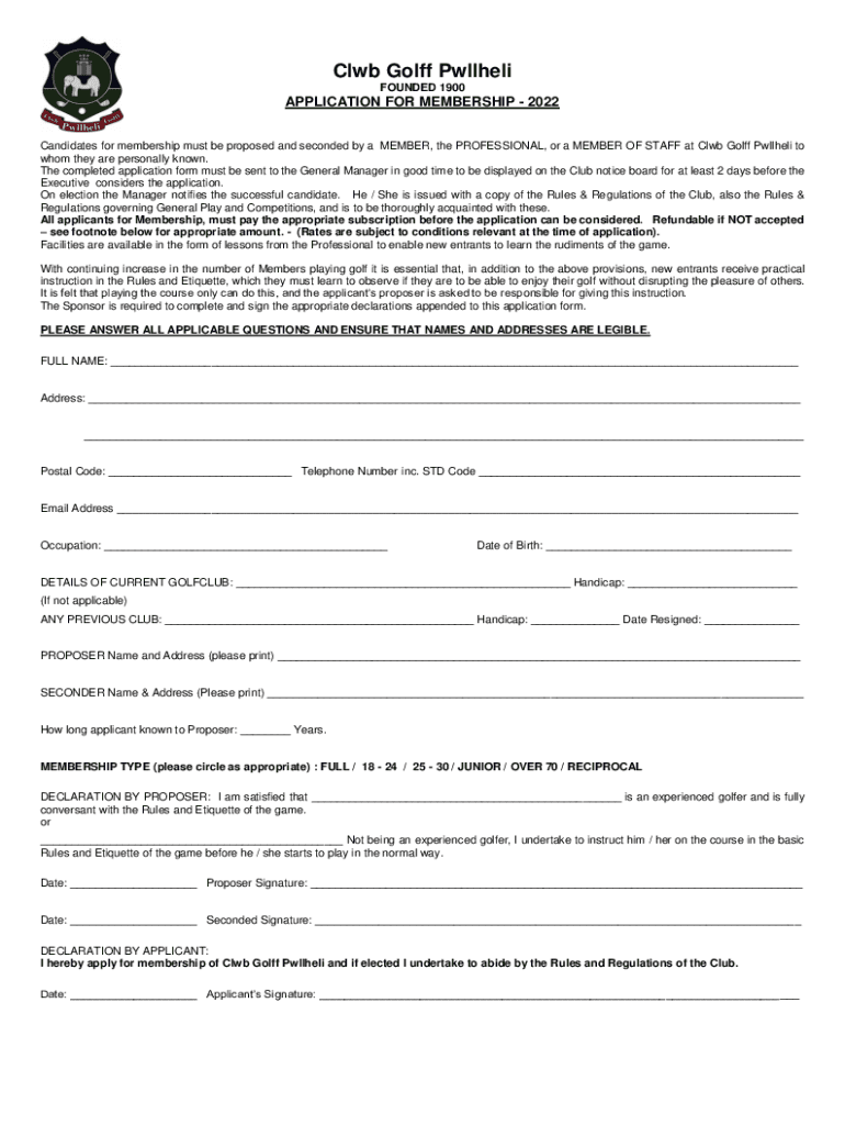 Club Golf Wilhelm FOUNDED 1900APPLICATION FOR MEMBERSHIP 2022 Candidates for membership must be proposed and seconded by a MEMBER, the PROFESSIONAL, or a MEMBER OF STAFF at Club Golf Wilhelm to whom