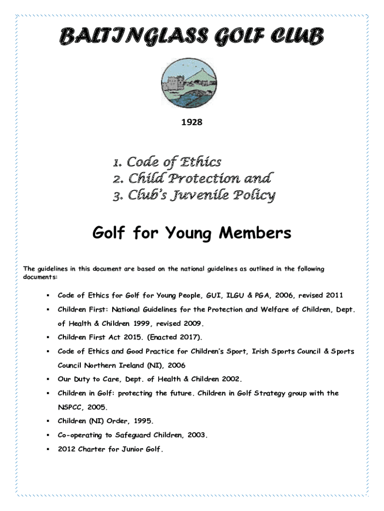 BALTINGLASS GOLF CLUB19281. Code of Ethics 2. Child Protection and 3. Clubs Juvenile PolicyGolf for Young Members The guidelines in this document are based on the national guidelines as outlined in