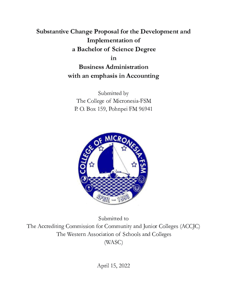 Substantive Change Proposal for the Development and Implementation of a Bachelor of Science Degree in Business Administration with an emphasis in Accounting Submitted by The College of Micronesia