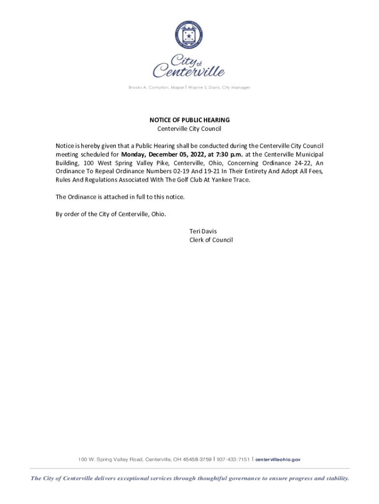 Get the free NOTICE OF PUBLIC HEARING Centerville City Council Notice is ...