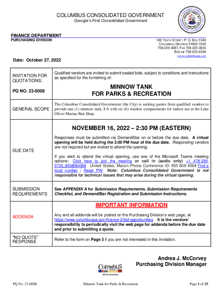 COLUMBUS CONSOLIDATED GOVERNMENT Georgia's First Consolidated GovernmentFINANCE DEPARTMENT PURCHASING DIVISION100 TENTH STREET, P. O. BOX 1340 COLUMBUS, GEORGIA 319021340 7062254087, FAX 7062253033