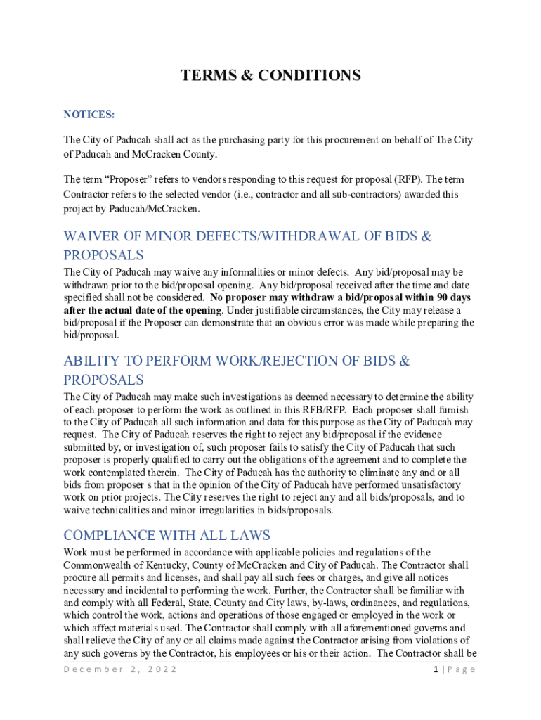 TERMS & CONDITIONS NOTICES: The City of Caducei shall act as the purchasing party for this procurement on behalf of The City of Caducei and McCracken County. The term Proposer refers to vendors responding
