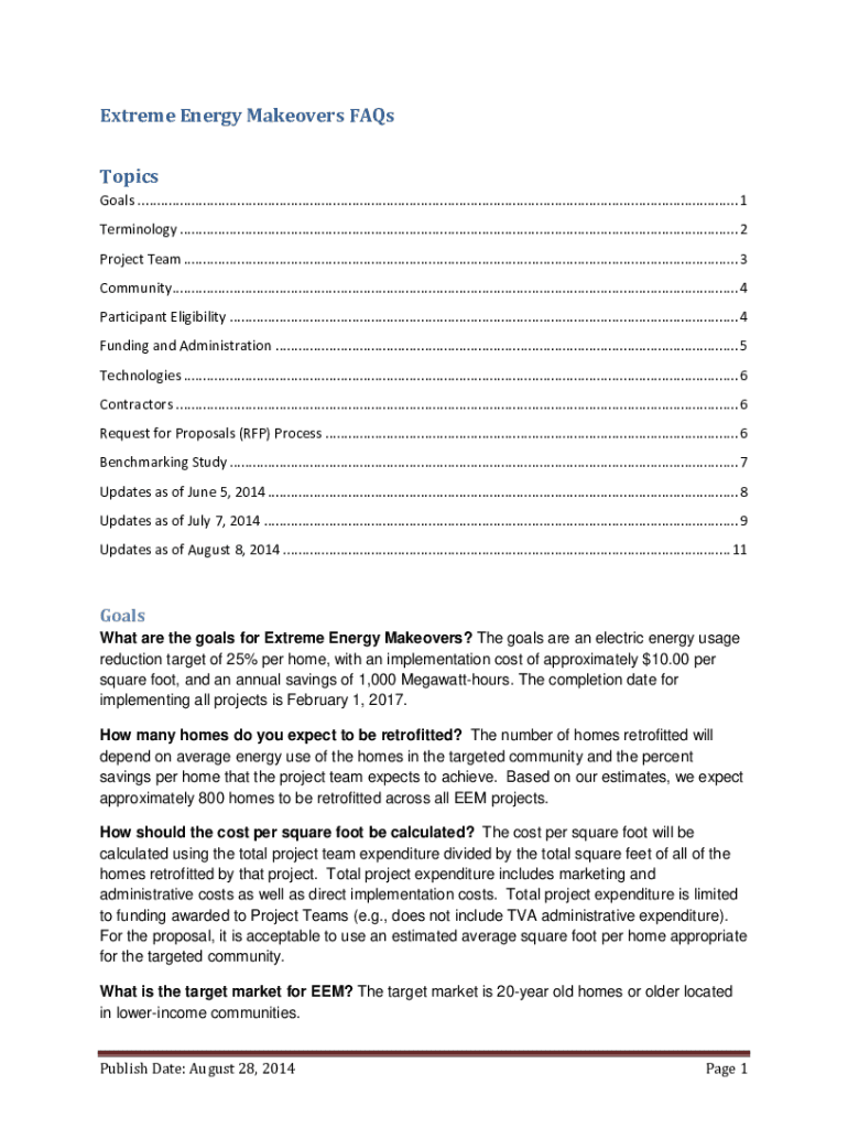 Extreme Energy Makeovers FAQs Topics Goals .............................................................................................................................................................